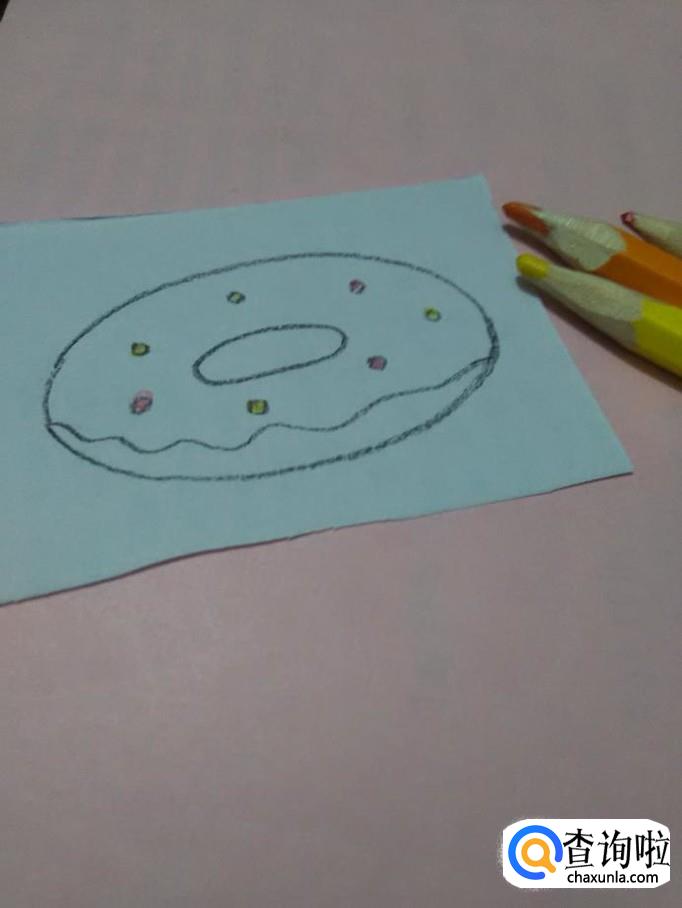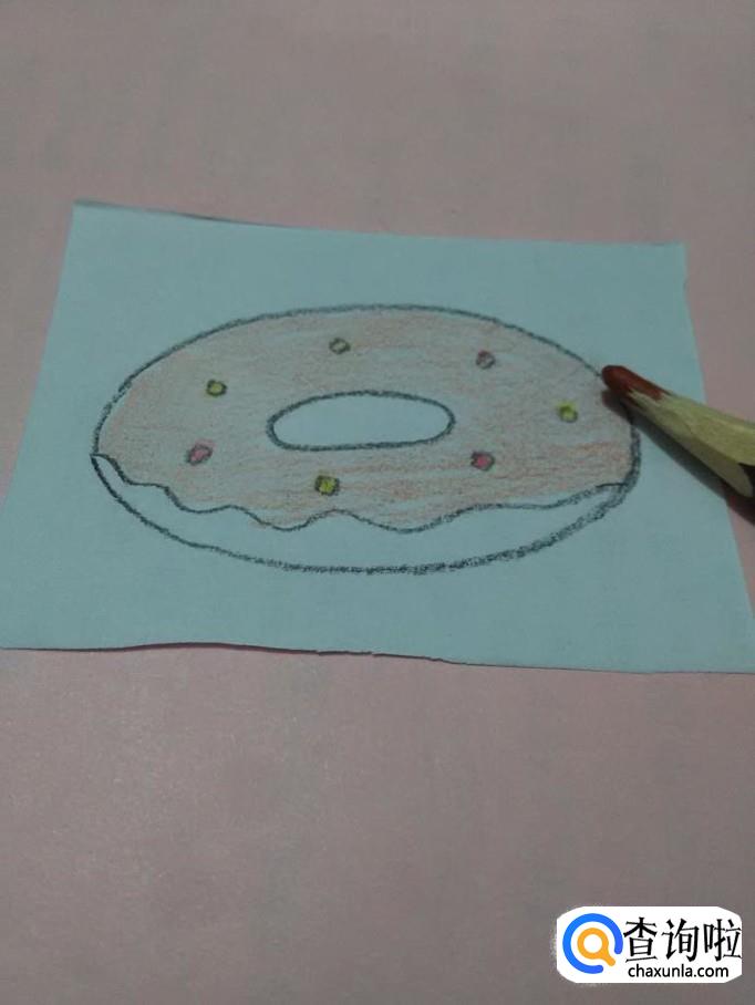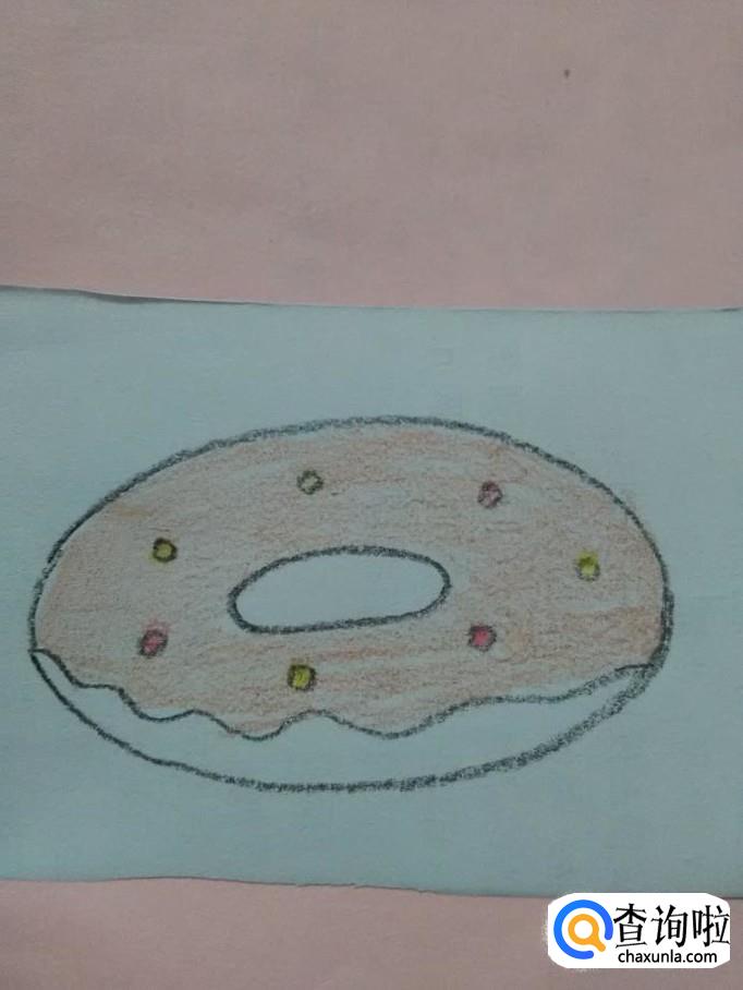再用棕色彩笔将两个椭圆形之间的部分涂上棕色,甜甜圈就画完了。