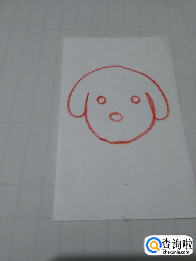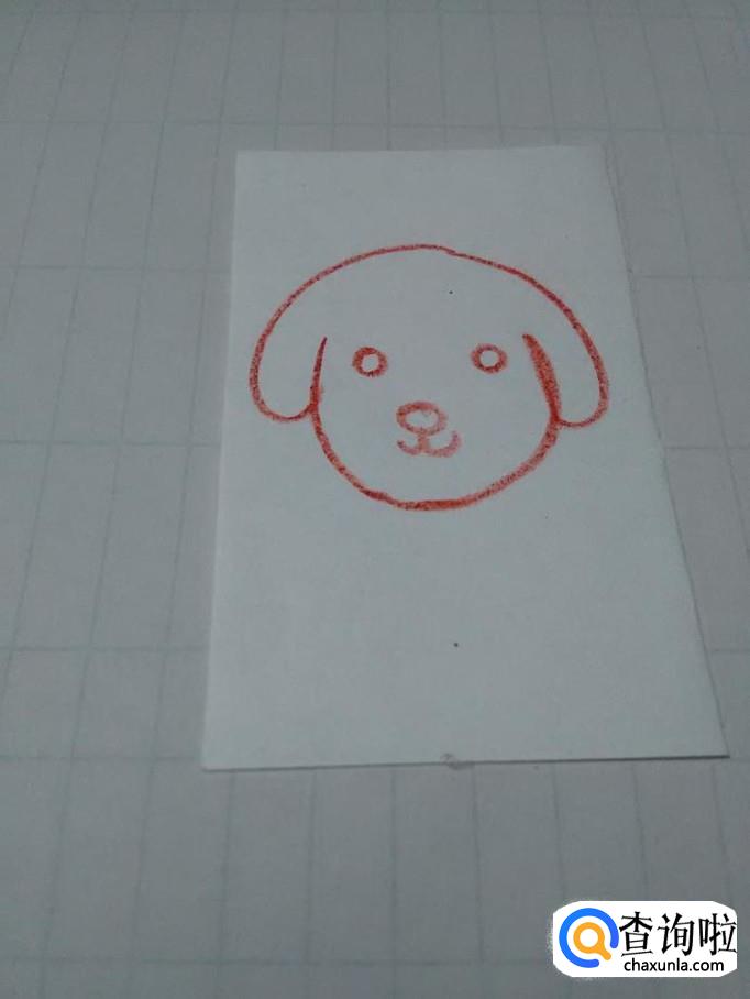 在小狗的脸上画三个0,表示小狗的眼睛和鼻子。