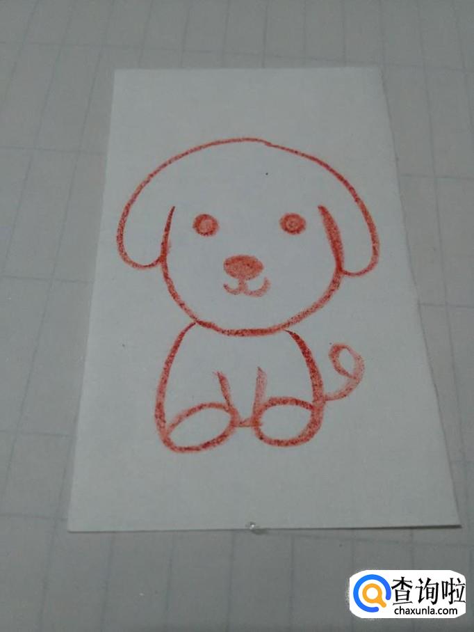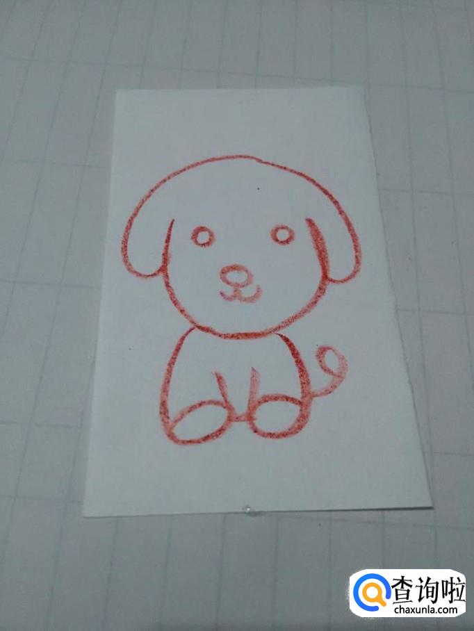 最后用彩笔将小狗的眼睛和鼻子涂上颜色,小狗就画完了。