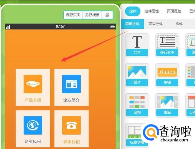然后就进入到具体的页面设计了,这里大家只需要从右边拖拽即可,如下图所示