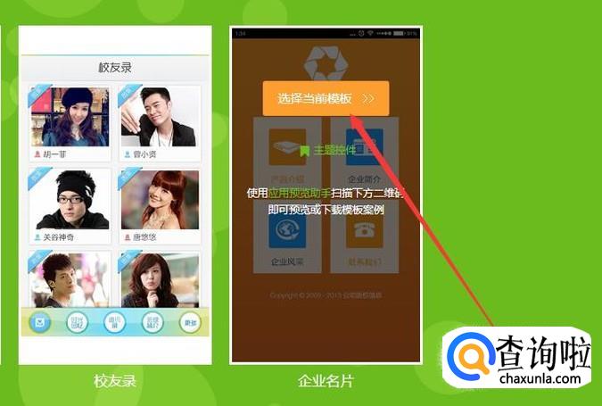 然后选择一个模板,鼠标放上去,点击选择当前模板,如下图所示
