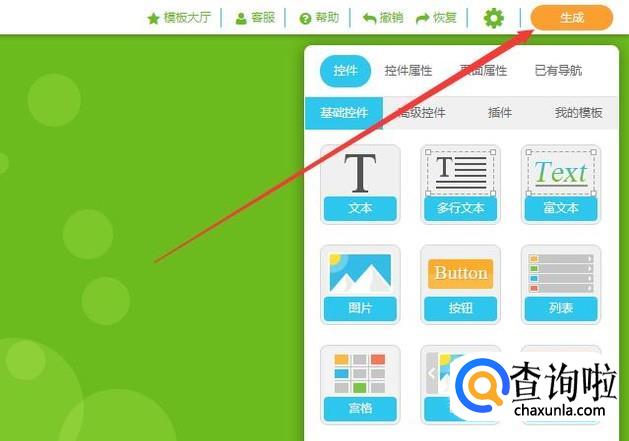 设计完页面以后,点击右上角的生成按钮,如下图所示