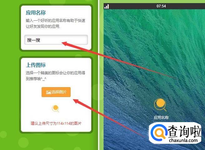 接着给你的软件起一个名字,并上传软件的图标,如下图所示