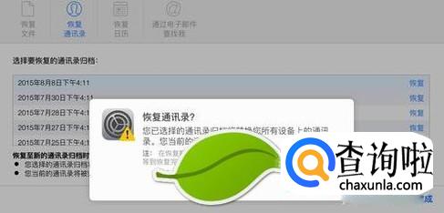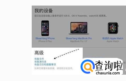 登陆成功以后我们进入设置页面,然后就会出现一些高级设置,而它的下面有一些恢复文件,恢复通讯录,恢复日历和注意事项等等,我们点击恢复通信录。
