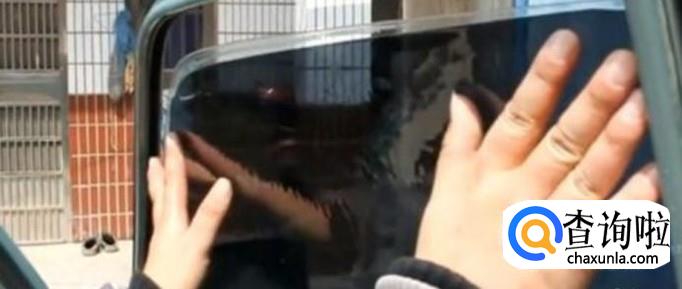 先王车窗上喷水,将膜贴上,开始裁膜.