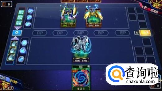开局的时候手牌一共5张,核心牌是圣导骑士,所以不把过多的关注点放在混沌魔导师卡牌上,在这场没什么大用。