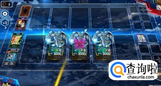最后用女战士献祭召唤圣导骑士,然后使用精灵之光增加400攻击,直接攻击对方恶魔,结束战斗!