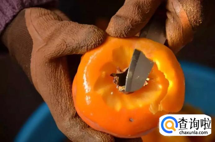当果实由黄转红尚硬未软时采收,采收时要注意留成"T‘状果柄,以利挂晒,尽量避免机械损伤。而且要选用金黄色略带红色的,果实饱满圆润的。采收后剔除病虫害果和伤果。