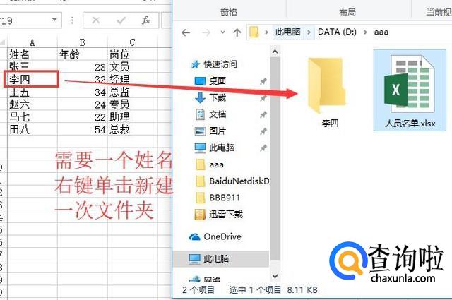 如何根据Excel人员名批量建立文件夹