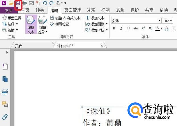 编辑完毕,点击页面左上角“保存”按钮,就可以保存修改过的PDF文档了。