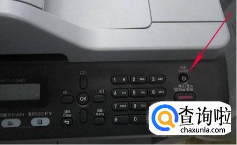 接通电源,按右上角的电源健,即打开了兄弟7380打印一体机。