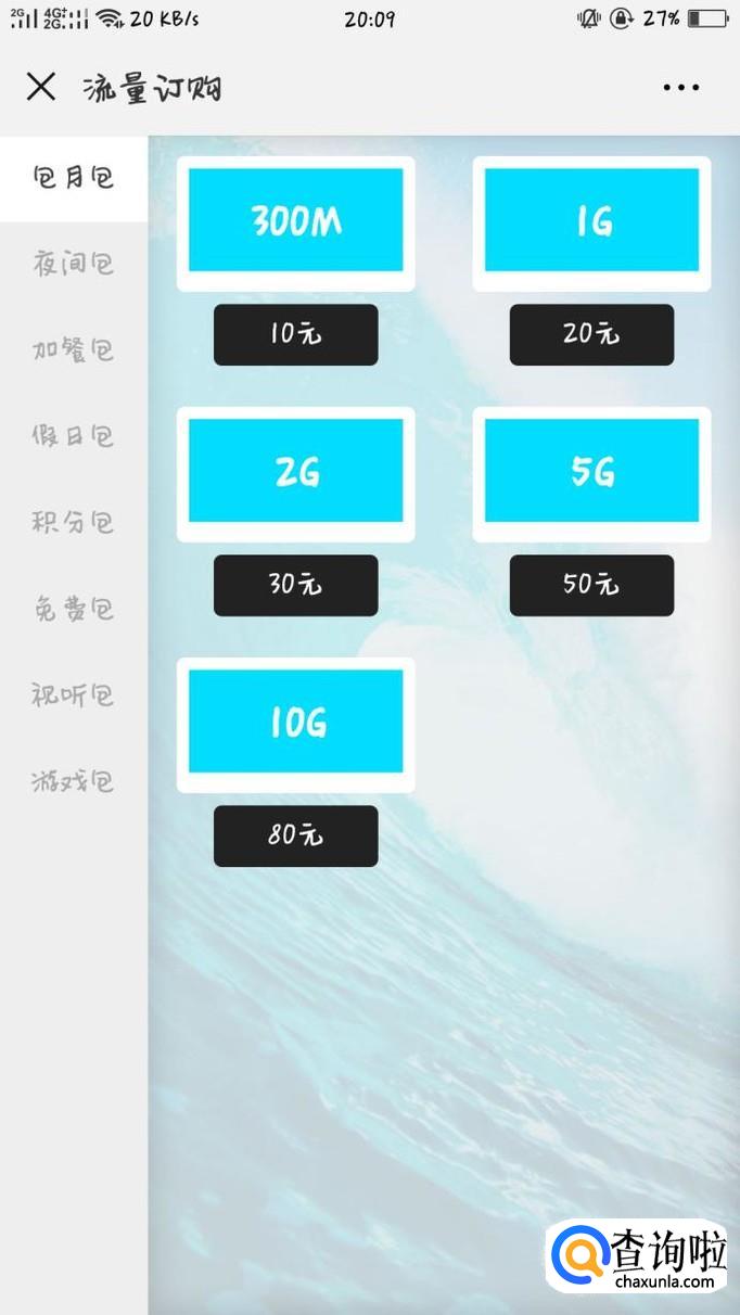 进入该服务之后,选择需要的流量包购买就行了。