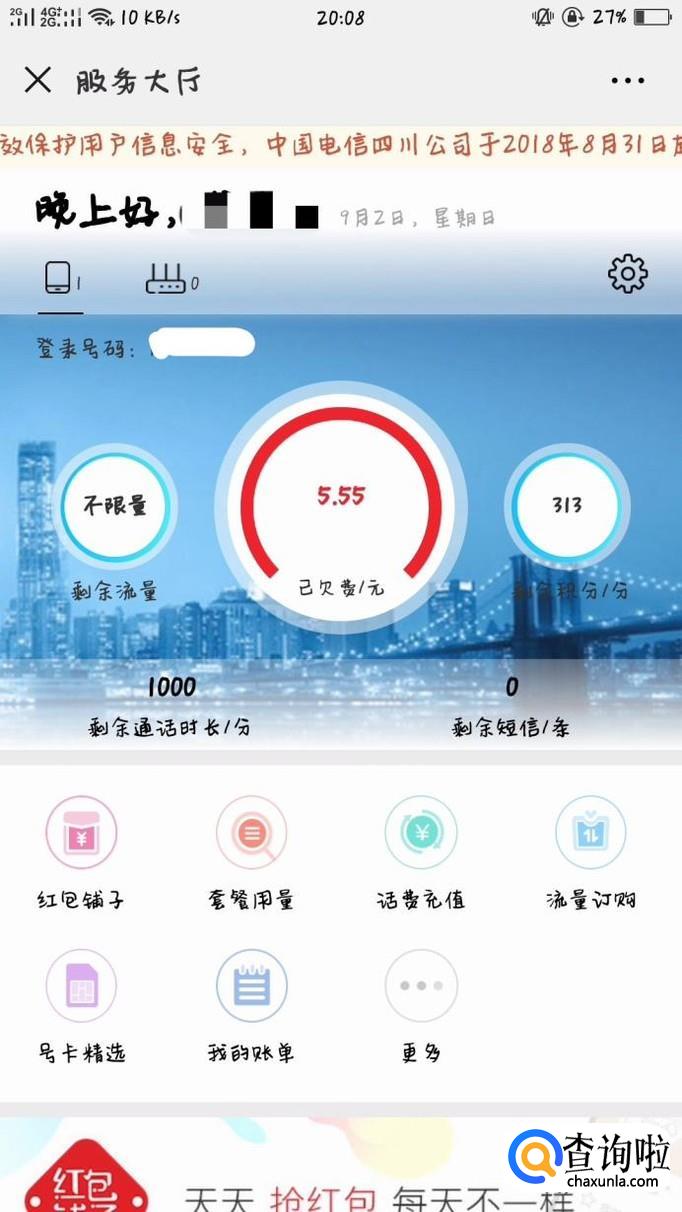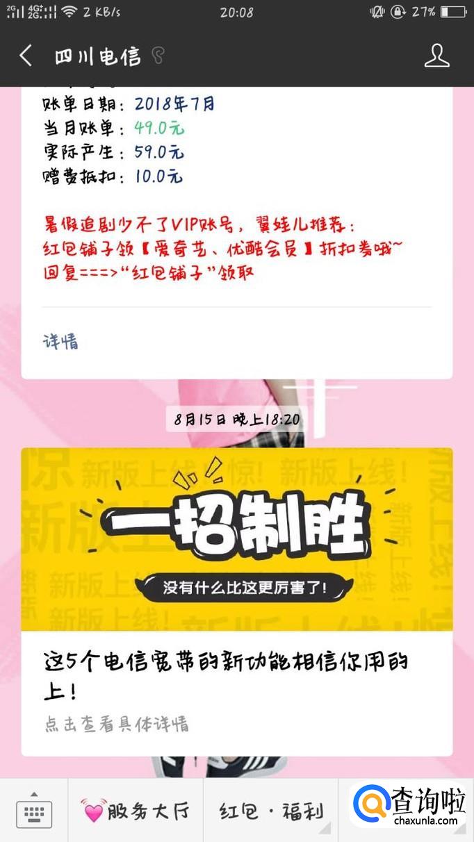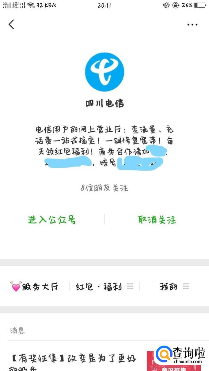想要开通电信的流量,可关注电信的公众号,在微信公众号中搜索即可。