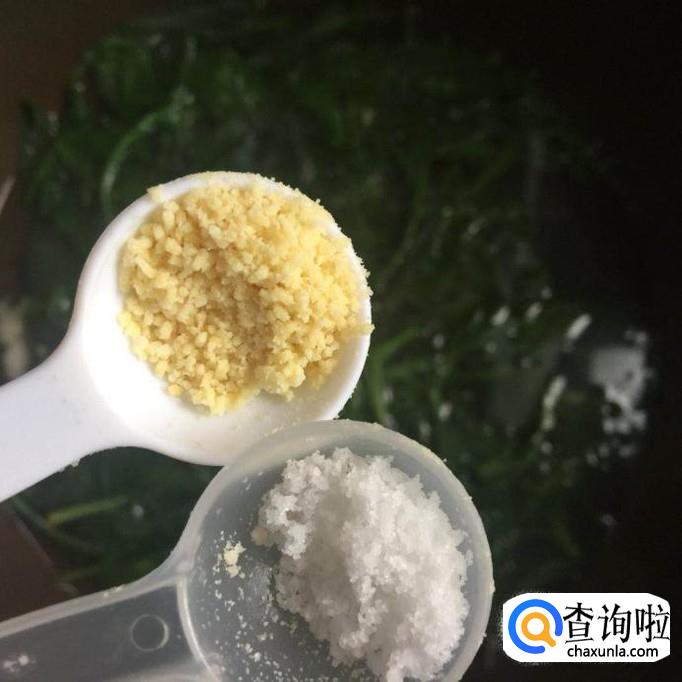 接着往锅中加入适量的盐巴和味精,如下图所示。