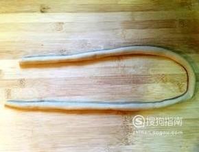 将莜面面团揪小,搓成长条后,取小段揉捏成莜面鱼。