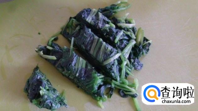 接着把菠菜切成小段,如下图所示。