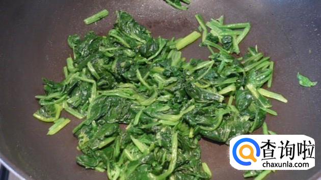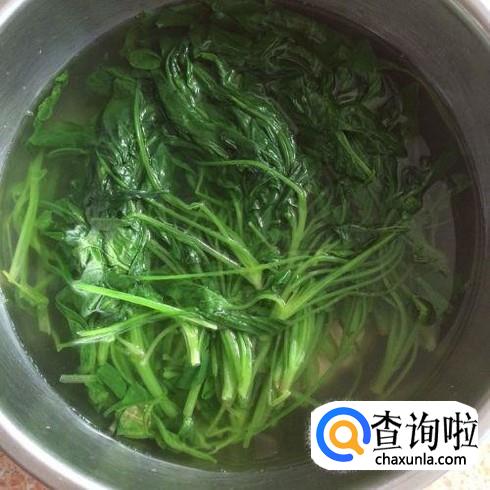 首先将洗好的菠菜放入锅中煮三分钟捞出沥干,如下图所示。