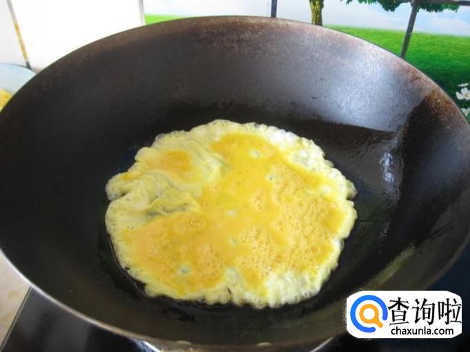 然后把鸡蛋用打蛋器打匀,倒入另一口锅中翻炒两分钟。