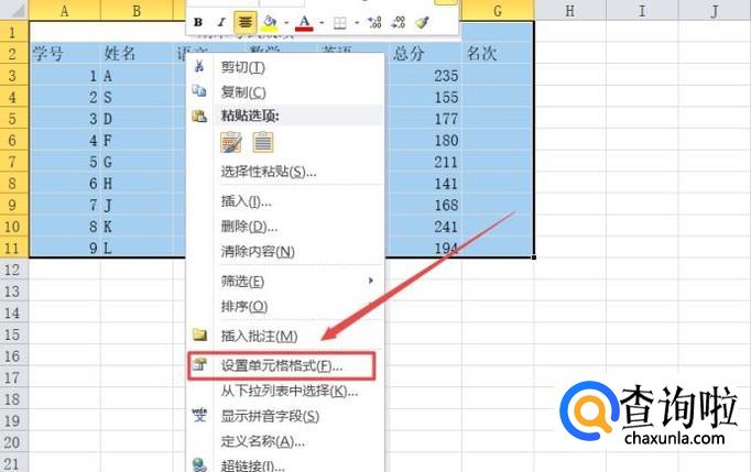 首先选中需要添加边框的区域,单击鼠标右键,在下面找到”设置单元格格式“,点击进入。