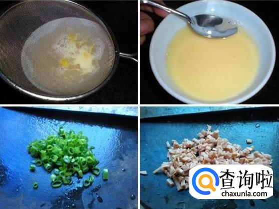 火腿肠鸡蛋羹;火腿肠切丁,鸡蛋调匀加入火腿肠搅拌均匀,锅内烧水将开时将鸡蛋放蒸笼上,蒸十五分钟,加入酱油,撒上香菜。