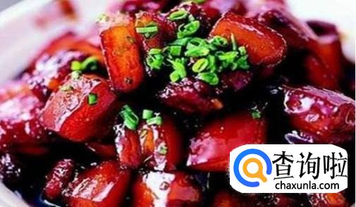 上海红烧肉:将五花肉洗净切块焯水,锅里倒油放入冰糖化开至褐色,倒入五花肉翻炒,中小火将肉炒至微黄,加入葱姜蒜等佐料继续翻炒,然后加入料酒,酱油将肉炒至上色,加入适量清水盖上锅盖焖半小时,然后将葱夹出来,加入少许盐,最后大火收汁即可。