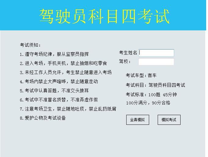 科目四,又称科目四理论考试、驾驶员理论考试,是机动车驾驶证考核的一部分。公安部123号令实施后,科目三考试分为两项内容,除路考外,又增加了安全文明常识考试,俗称“科目四”,考量“车德”。因为这个考试在科目三之后进行,所以大家都习惯称之为科目四考试。实际在官方说法中没有科目四。