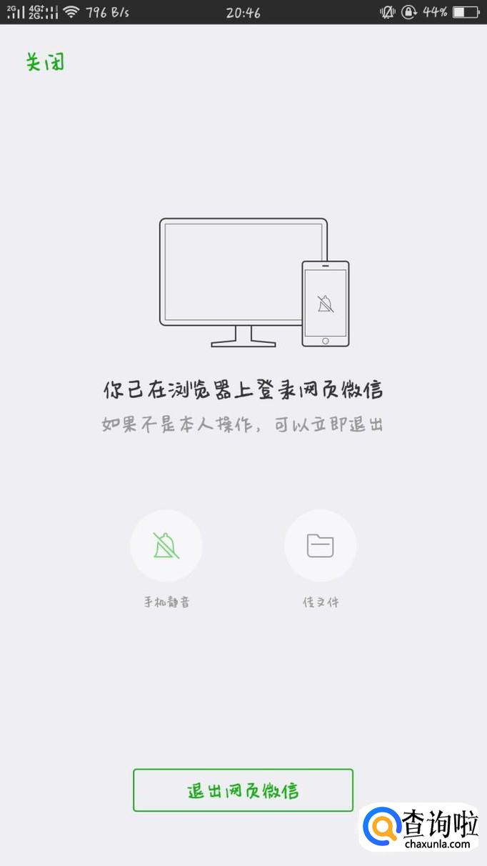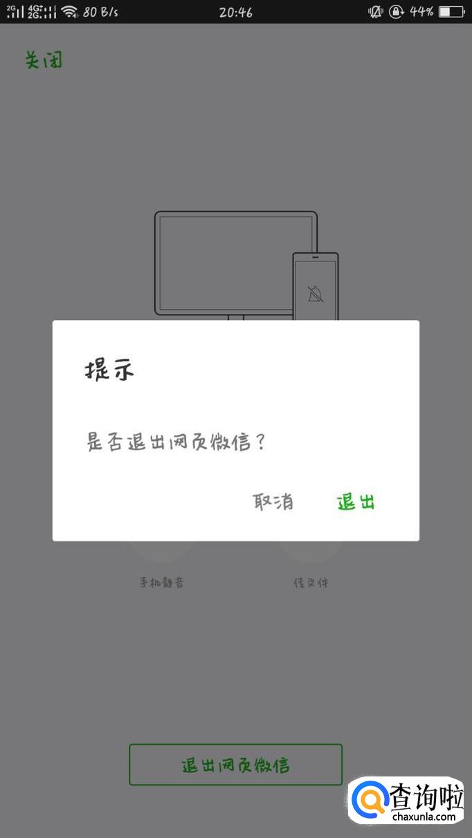 点进提示过后,在屏幕底部会有“退出网页微信”的选项,点击即可。