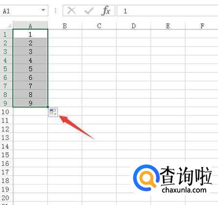 选择之后将鼠标移动到右下角变成十字加号的时候向下拖动,此时鼠标经过的单元格就被填充上序号了,如图所示: