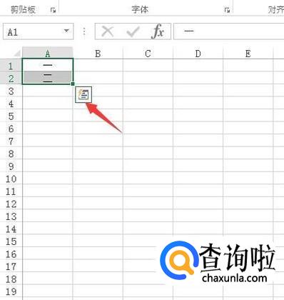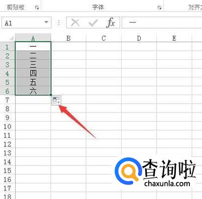 选择输入的大写序号,将鼠标移动到右下角变成十字加号的时候向下拖动,此时鼠标经过的单元格就被填充上序号了,如图所示: