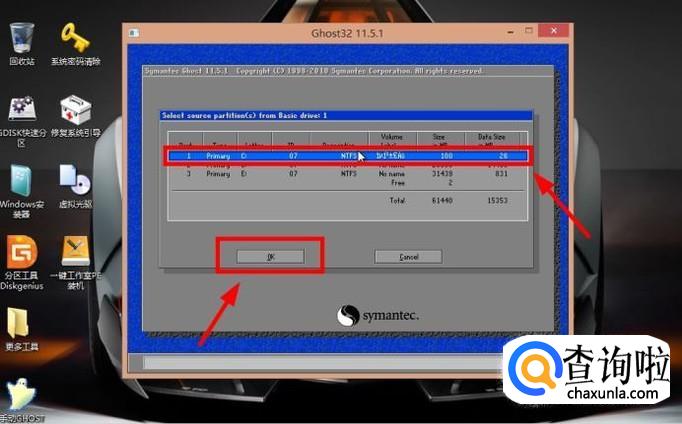 选择“ Primary C : (即系统盘) ”,点击“OK”