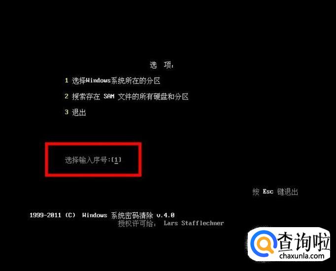 选择好你的Windows系统所在分区,选择好后输入序号1,按“Enter”键