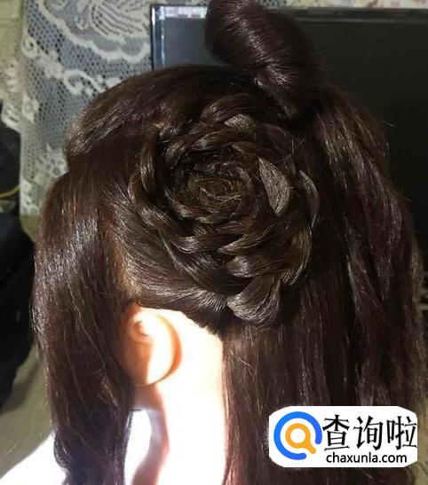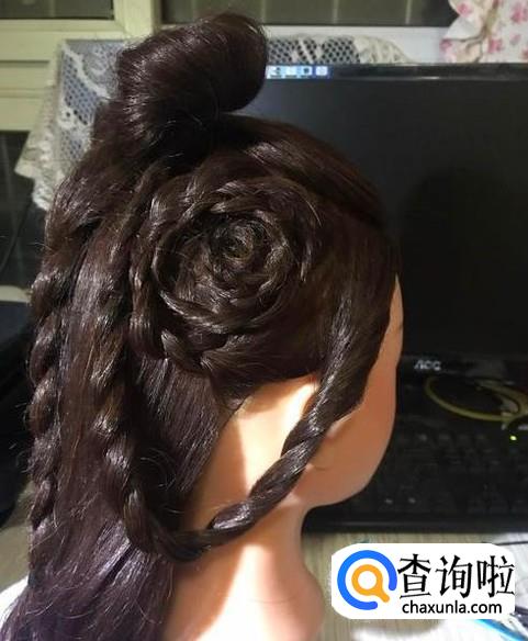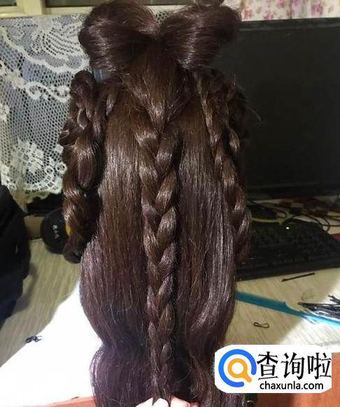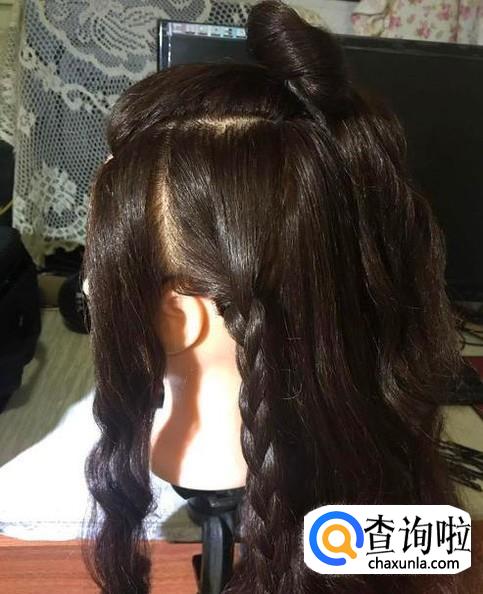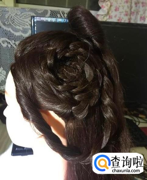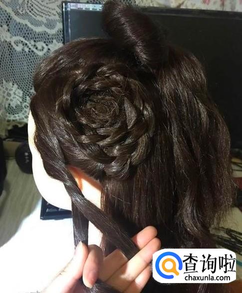 中间部分编一条三股辫向上盘成圈的形状。
