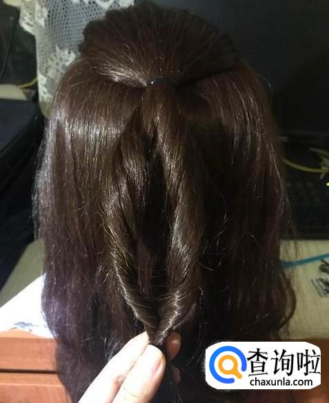 后区剩下的头发可以选择披散着,也可以与辫子合并扎起来。