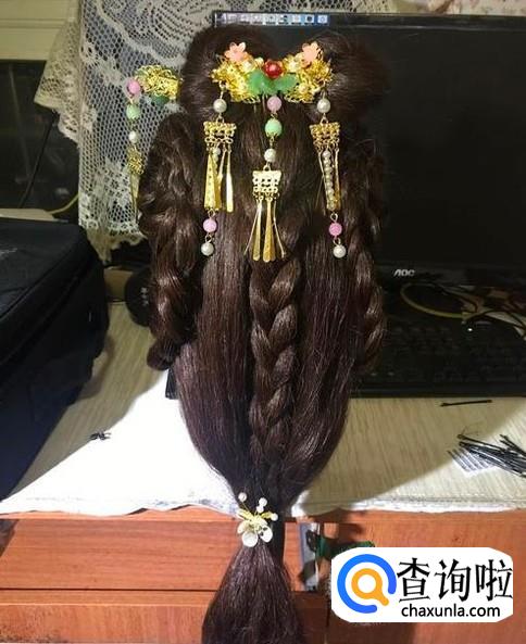 前区两股辫(头发碎的可用三股辫)编好。