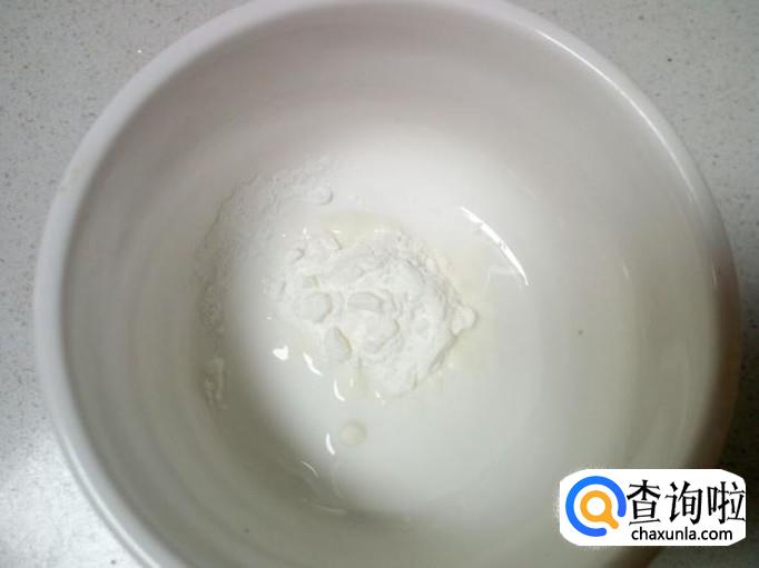 碗里放入一匙儿淀粉,兑水,勾成芡汁。
