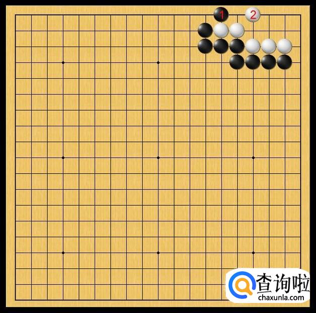 白棋在白2处落子,白2的落子不仅防御住了黑1的爬,而且对白棋右角底线有一定程度的加厚。如图所示。