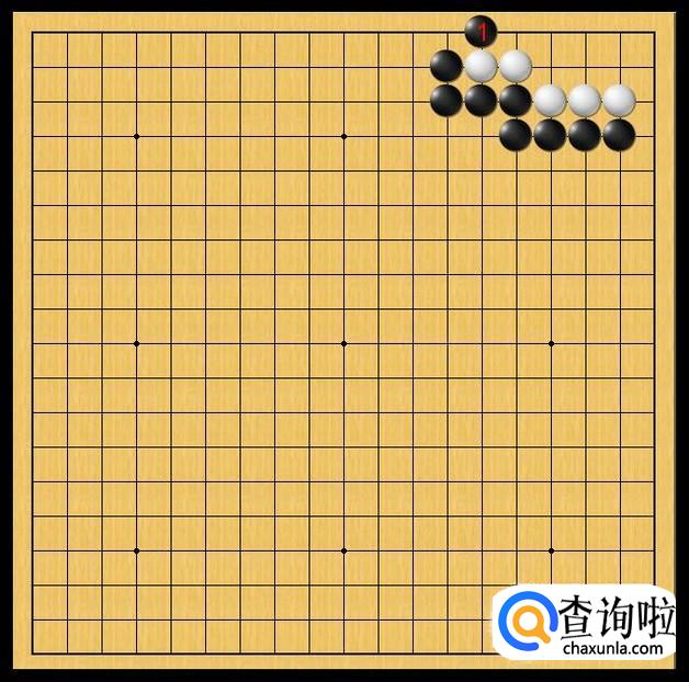 黑棋先行,黑棋在黑1处爬,黑1的爬不仅对白棋底边上的白二子产生威胁,而且带有试探白棋应手的目的。如图所示。