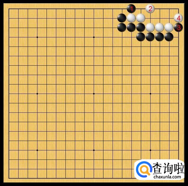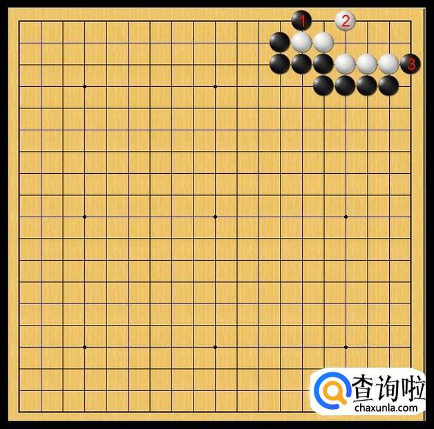 黑棋又换了个方向,黑棋在白棋右边底线处落子黑3,黑3的爬侵削着白棋右上角。对白棋右上角产生威胁。如图所示。