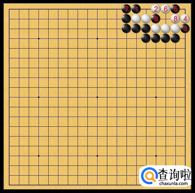 黑棋在黑7处粘上,黑7的粘上使得黑棋能在白棋左边底线发起进攻。如图所示。