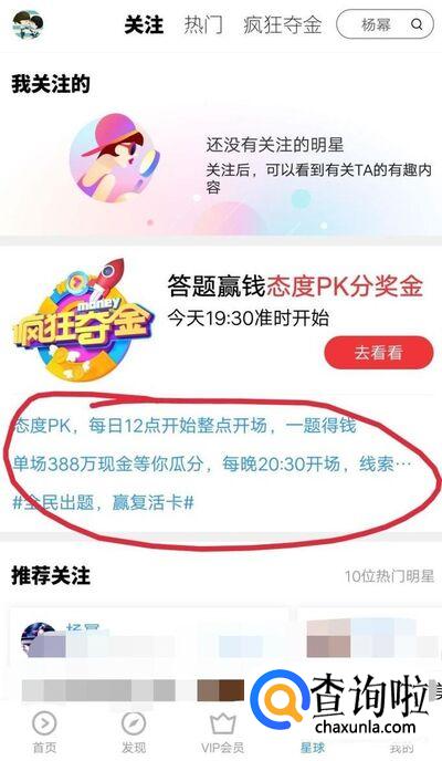 可以看到疯狂夺金的活动入口,答题活动共分3部分组成。分别是态度题、宝箱场以及常规的直播答题。