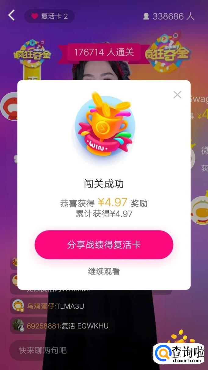 活动开始后进入答题,全部答对就能平分当期奖金。每场一般可使用1张复活卡,我有幸闯关成功,获得当期奖金!奖金满20才可以提现,这点要求有点高!