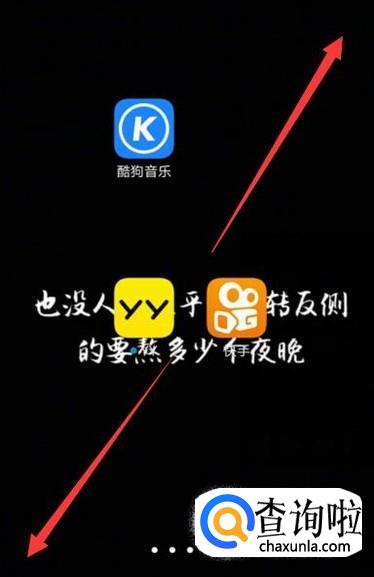 用手指在屏幕中间向两个对角的方向划,进入已隐藏应用界面,如图所示。