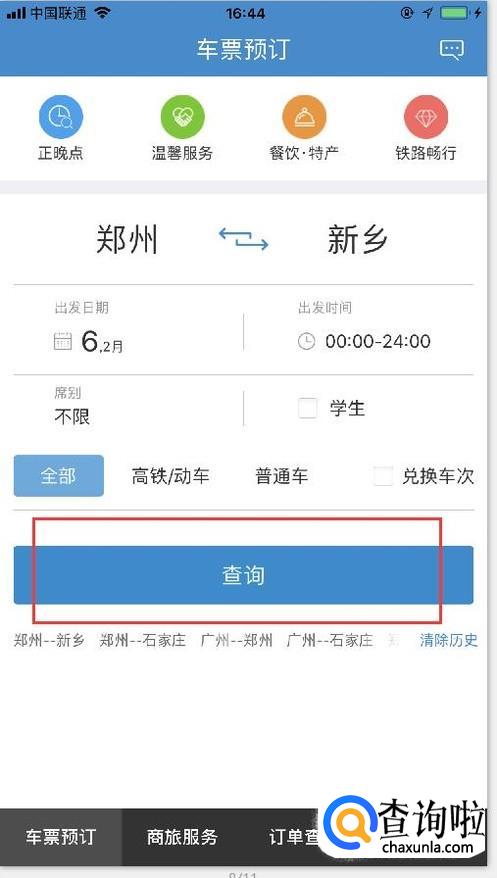 登录12306账号,如果没有就进行注册,然后我们选择好地点和时间,点击查询车次
