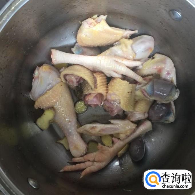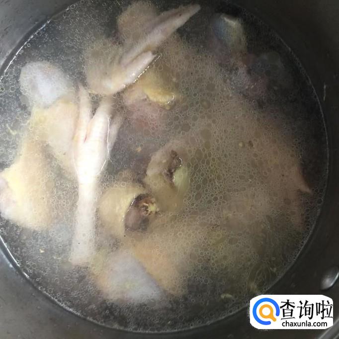 接着往锅中加入两倍鸡肉的清水,开小火炖30分钟,如下图所示。