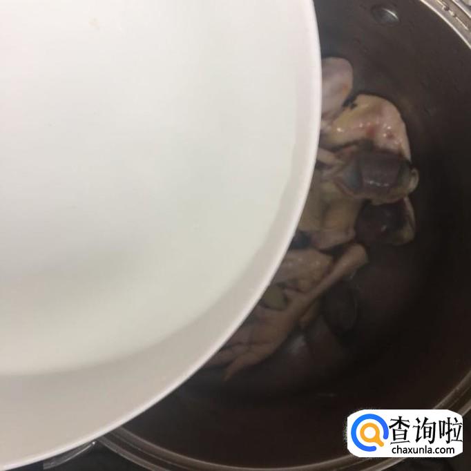 然后把鸡肉倒入炖锅,如下图所示。