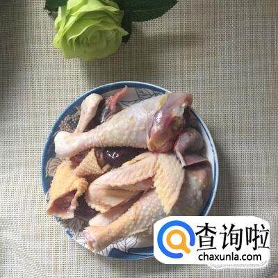首先将鸡肉切成小块,如下图所示。