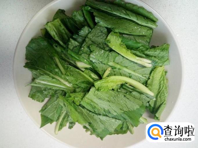 小白菜收拾清洗干净,控干水分,切成段。