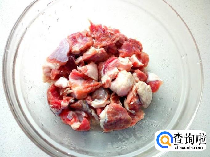 牛肉用水清洗干净,切成块,放入水中浸泡一下,去除血水。然后再用水冲洗干净,控干水分。