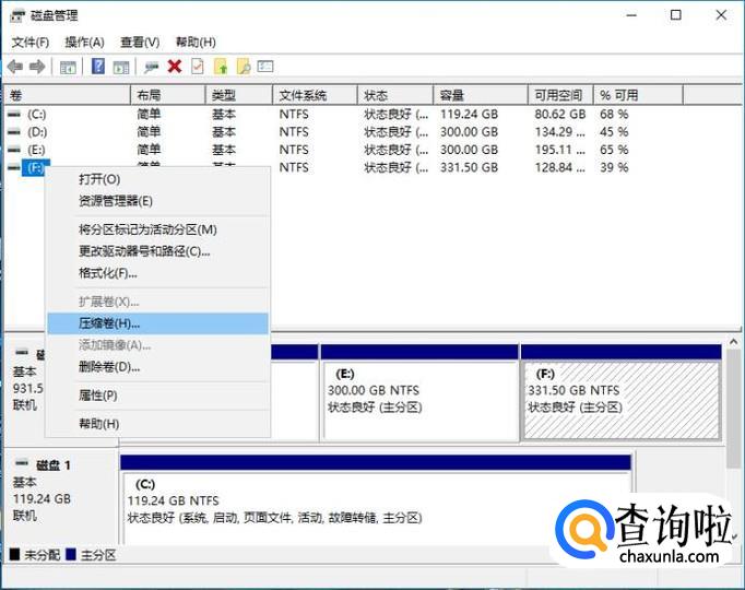 如果它是包含文件的现有驱动器,甚至安装了操作系统,则需要先创建一些“未分配的空间”,然后才能对其进行分区。右键单击它,然后从结果下拉菜单中选择“压缩卷”。