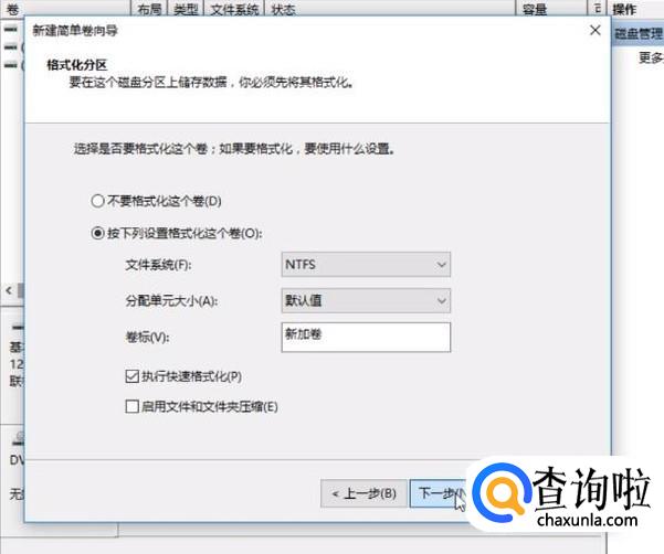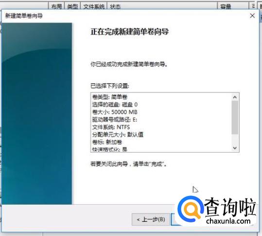 继续单击“下一步”按钮,最后点击“完成”以创建卷。